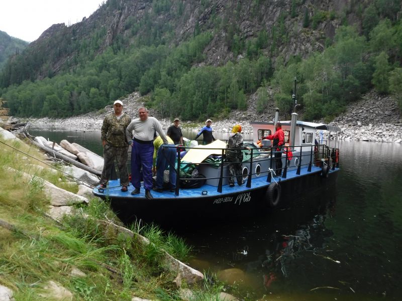Примерно через 1-1,5 км после порога выбрали место на берегу и произвели антистапель. Пока складывались, подошел теплоход. Погрузились и пошли по водохранилищу. Часа через 3-3,5 добрались до залива Джойская Сосновка, где на берегу нас ждал знакомый микрик. Погрузились в него и часов в 6 вечера прибыли в Черемушки. Распрощались с остальной частью команды, сели в свою машину и ночью уже были в Красноярске.
