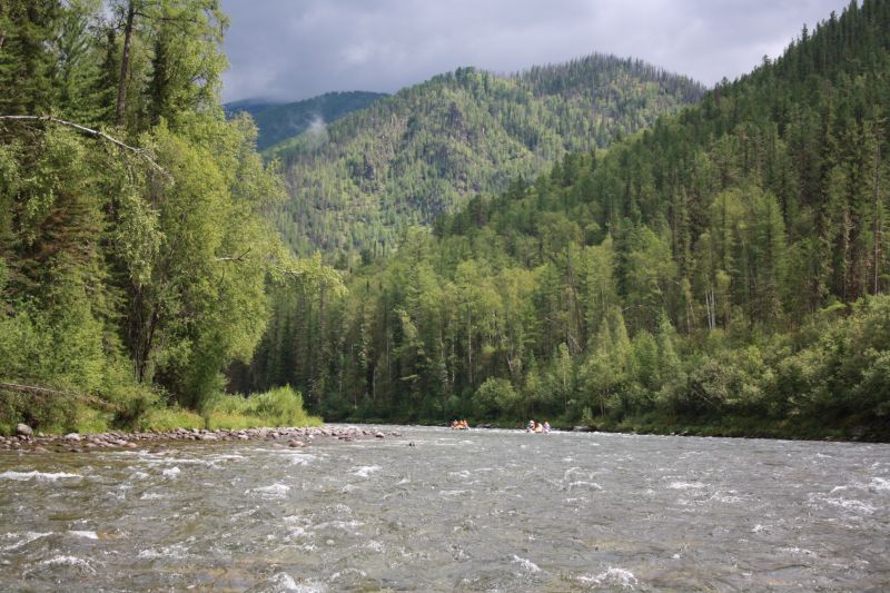 Дальше прошли до устья реки Чинчилиг, перекусили, порыбачили. Через 2-3 км слева в Кантегир впадает река Арыхем, и чуть ниже ее устья находится порог Наука. Он тоже короток, его прошли без осложнений. Как показал дальнейший сплав, пороги Скальпель и Наука по сравнению с последующими препятствиями являются незначительными и представляют угрозу для начинающих сплавщиков только в силу неопытности экипажей.